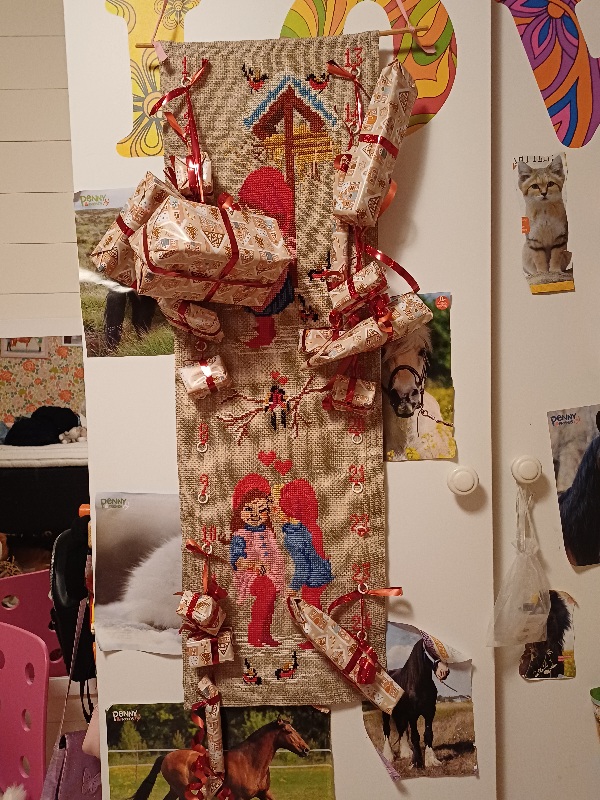 Förra helgen när yngsta var hos sin pappa gjorde jag iordning hennes julkalender. Min gamla som farmor sydde till mig. De äldre barnen ville ha köpta smink-/hudvårdskalender.