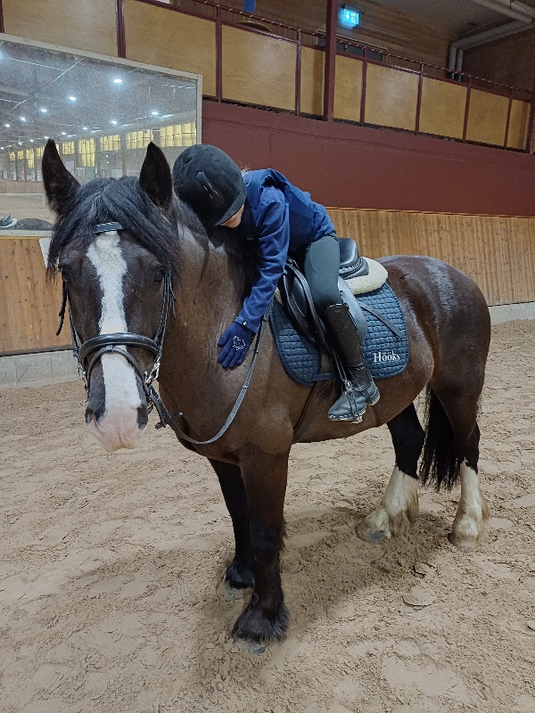 I morse åkte jag till ridskolan med E. Det var bara ogjort att jag inte blev uppäten. Snacka om mouthy häst. E red mestadels själv som tur var, eftersom ponnyn gjorde allt för att komma åt mig. Vi klarade oss helskinnade till slut, alla tre.